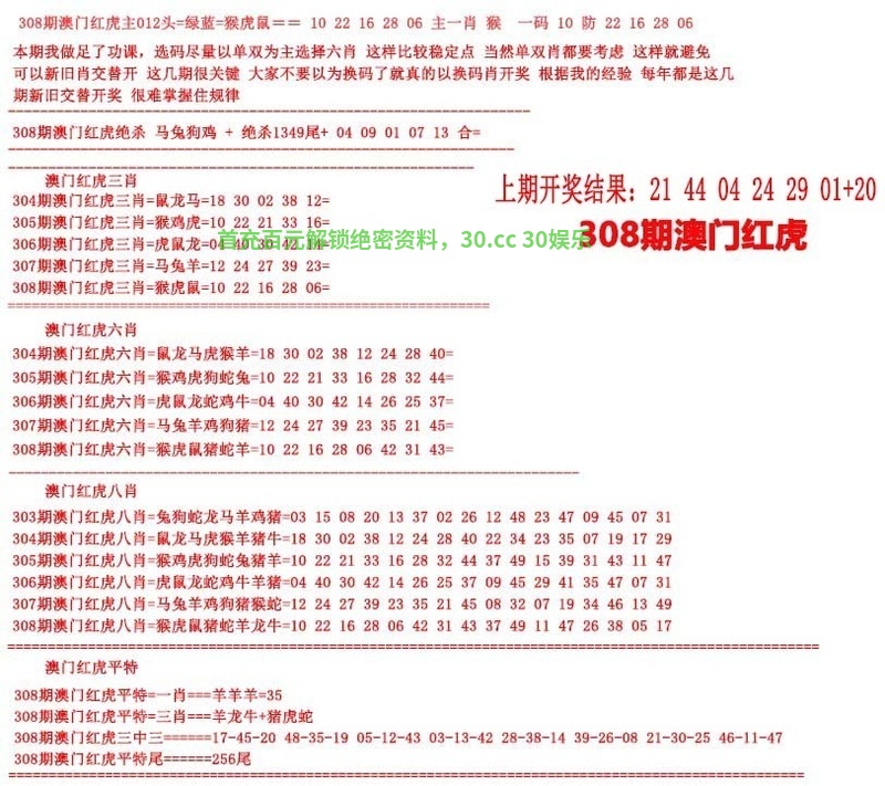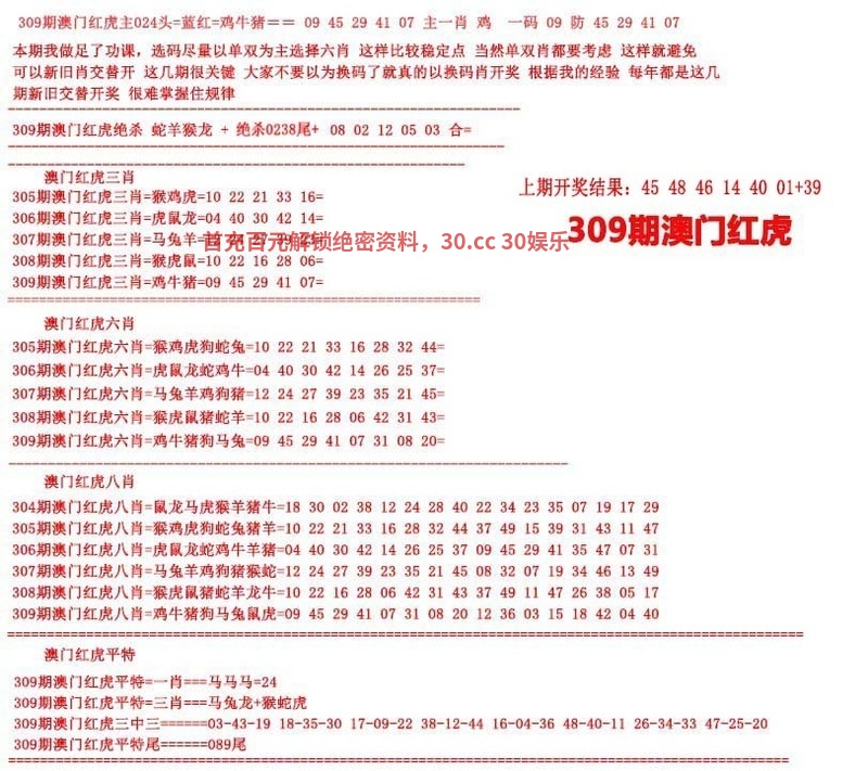 | 310期:【红虎好料】『两季中特』 | 红虎好料 |